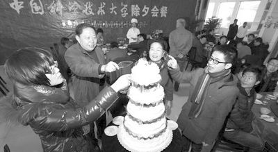 本报讯 1月22日中午,学校在东苑餐厅一楼联合举办除夕餐会,给寒假不回家的同学送上新年的祝福。校领导鹿明、陈初升、张淑林、周先意,校长助理尹登泽,有关部门负责人和主办单位的领导、工作人员以及寒假留校学生180余人参加了餐会,与留校同学共度新春佳节。