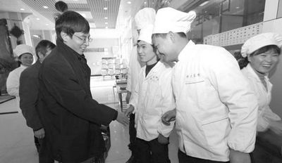 陈初升、周先意和学生代表向坚守岗位的饮食服务集团的同志送上了鲜花和诚挚慰问,表达同学们对后勤职工的深深谢意。