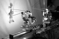 作为比赛计分环节之一,现场噪音分贝仪记录了观众的热情,每一支队伍表演结束,都收获了观众热烈的掌声和欢呼声。Bigcat、甘若饴、江南布鲁斯……各参赛队展示的艺术内容不同,难点和难度也不尽相同。有的通过巧妙的设计,模拟人的手指结构,来完成拉二胡、吹笛子、弹琵琶等动作,有的用仿生技术来模拟舞狮,还有的用复杂的程序控制来完成书法、皮影的复杂表演,精心的设计和流畅的表演赢得了现场观众热烈的喝彩。