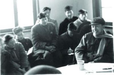 部分成员开会。右一为钱学森,钱老身后低头记笔记者是作者。