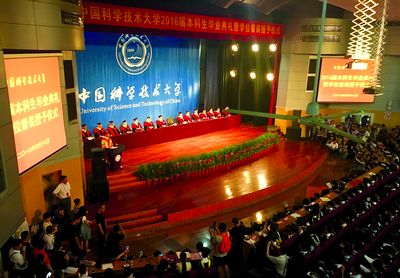 典礼前,礼堂两边的大屏幕上播放了由中国科大学生原创的音乐视频《我在科大的日子》和致敬西部支教的歌曲MV《如果不是你》。学生合唱团现场演唱了《共和国之恋》和《飞来的花瓣》,表达了对母校的不舍,对老师、同学的依依惜别之情。
