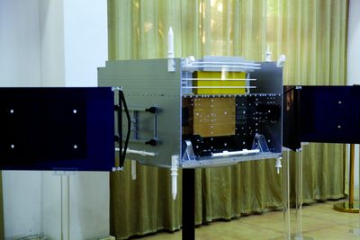 本报讯 9月20日,中国科大58周年校庆日当天,暗物质粒子探测卫星模型捐赠仪式在校史馆举行。暗物质卫星首席科学家、紫金山天文台副台长、我校校友常进研究员,我校核探测与核电子学国家重点实验室主任安琪教授作为捐赠方代表参加捐赠仪式,校领导许武、陈晓剑、朱长飞、黄素芳,物理学院执行院长杜江峰等参加了捐赠仪式。