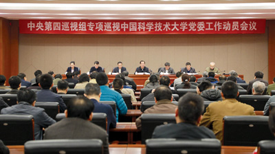 根据中央关于巡视工作的统一部署,2017年3月4日上午,中央第四巡视组专项巡视中国科技大学党委工作动员会召开。会前,中央巡视工作领导小组办公室负责同志向党委书记许武、校长万立骏传达了习近平总书记关于巡视工作的重要讲话精神。会上,中央第四巡视组组长马瑞民就即将开展的专项巡视工作作了讲话,中央巡视工作领导小组办公室负责同志就配合做好巡视工作提出要求。许武主持会议并作表态讲话。