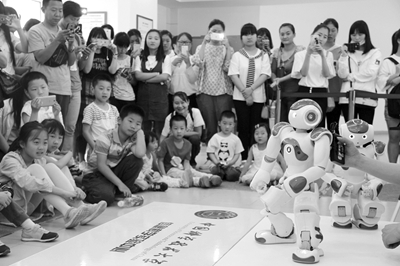 科大信息科学技术学院科普点以及计算机科学与技术学院科普点的机器人,一向是孩子们最喜欢的。除了“NAO”机器人为大家表演西游记的故事,还有智能服务机器人“可佳”根据演示人员的口头指令,自动寻找指定的物品并交给演示者,在整个过程中,聪明的“可佳”完全自主地完成任务,吸引了众人围观。