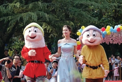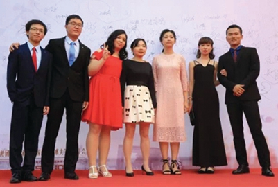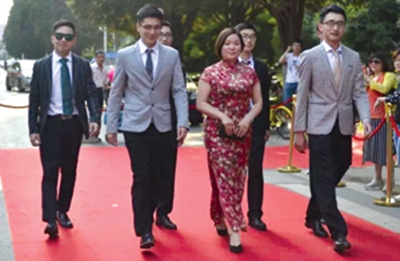 优秀班主任汤琴琴老师(中)将以这一路红毯送别她的学生