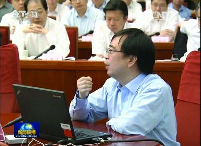 图为我校常务副校长潘建伟院士应邀就量子信息研究作讲解发言。
