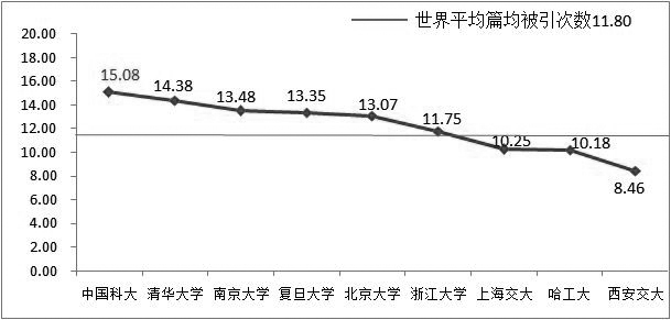 C9高校2007-2016年收录SCI论文篇均被引用情况