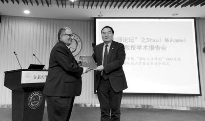 本报讯 12月7日下午,著名化学家、美国国家科学院院士Shaul Mukamel教授做客合肥大师论坛,在合肥微尺度物质科学国家研究中心做学术报告。包信和校长出席并为其颁发中国科学院“国际人才计划”2017年度国际杰出学者证书。合肥微尺度物质科学国家研究中心“千人计划”教授严以京主持。