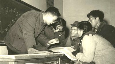 1959年冬,大二课间休息时,在北京玉泉路19号西二楼教室,华罗庚
