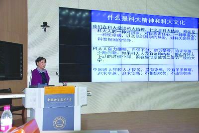 在两个小时的报告中,施蕴渝院士从生物物理系的建制和历史沿革,以时间为纽带,带领同学们穿越至建校之初,用一张张黑白照片,讲述郭沫若、钱学森、严济慈、华罗庚、郭永怀等老一辈革命家和科学家在那个物质极度匮乏的年代,用实际行动教育引导科大莘莘学子树立为中国科学技术事业走向世界前列贡献力量的理想信念,这是科大人的历史使命和精神传承。让她记忆犹新的是1961年,学校大礼堂的一台黑白电视前,几百人挤着看世乒赛,当看到中国乒乓球队获得世界冠军时,爆发出阵阵欢呼。正是这种理想信念和爱国热情,让科大生物物理系一步步从百废待兴、南迁合肥、独立建系直至成立学院,也一步步形成不屈不挠、精诚团结的奋斗精神。