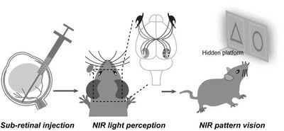 本报讯 中国科大生命科学与医学部薛天教授研究组与美国马萨诸塞州州立大学医学院韩纲教授研究组合作,结合视觉神经生物医学与创新纳米技术,首次实现动物裸眼红外光感知和红外图像视觉能力。该研究成果于02月28日(美东时间)在线发表于国际顶级期刊《Cell》上,并被《Cell》杂志选为本期唯一科普视频进行重点推广。