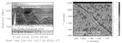 暗条中的两种运动:左图显示沿暗条轴向的振荡,右图显示环绕暗条轴向的旋转运动。