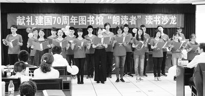月27日,“献礼建国70周年”图书馆朗读者读书沙龙活动举行。近百名朗读者和爱好朗读的师生以及部分附中小学生和家长等参加了活动。活动以图书馆志愿队员们的集体朗诵《沁园春·长沙》开场,饱满激昂的情绪、意气风发的姿态赢得了满场喝彩。按作品风格,朗读者陆续登场,大家或激扬澎湃,或知性感人、或抒情婉转,或甜美诗意……或原创或经典,以自己对朗读的热爱、丰富的情感和生动的演绎,为大家带来了一场充满魅力的声音的盛宴。