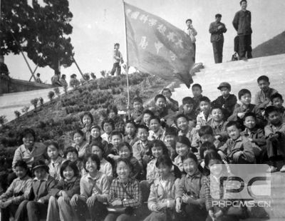 1980年代,庄小威(前排右三)和全班同学春游大蜀山合影