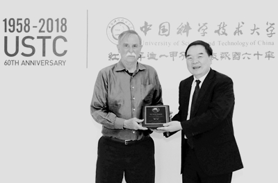 包信和对David J. Wineland 教授访问我校表示欢迎,对他在离子阱量子信息领域的突出成就和贡献表示敬意,同时对他获得2018年度“墨子量子奖”表示祝贺。他表示,十分期待诺奖大师为我校师生做出精彩报告,表达了日后两校寻求更多合作机会的愿景,并为Wineland教授颁发“合肥大师论坛”纪念证书。