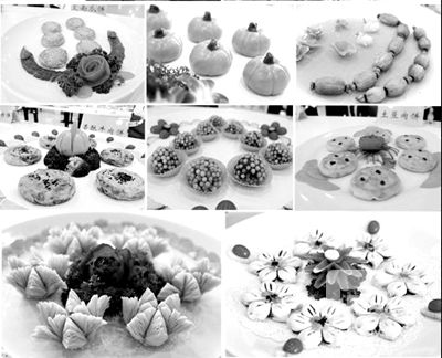 12月18日、19日下午,第五届学生食堂岗位技能大赛举行。大赛以技能展示、菜品创新为理念,设置了大锅菜、刀工、一勺准、面点、包饺子5个项目。图为大赛中造型精致、香味诱人的面点。