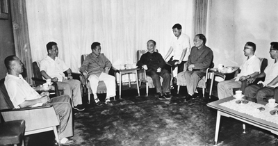 1977年8月5日至13日,中国科学院在北京召开第一次中国科学技术大学工作会议。郭沫若校长虽然一直关注此事,无奈身为国家领导人国务繁重,同时身体状况欠佳,却没能参加此次会议。10日下午,包括严济慈副校长在内的部分与会中国科大代表,集体来到郭沫若下榻的北京饭店看望久违的老校长(图2)。当郭沫若出现在会客厅时,大家长时间热烈鼓掌,很多人情不自禁流下了激动的泪水。