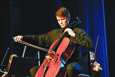 下半场第一首是柴可夫斯基的《洛可可主题变奏曲》。曲名意在表明乐曲按照莫扎特的风格写成。曲调流丽安逸,具有和莫扎特作品相似的诗意,同时也表现出柴可夫斯基的艺术个性,以及俄罗斯民族音乐的风格。充分发挥了大提琴的各种精湛演奏技巧及丰富的表现力,让观众们感受到了独属于大提琴的魅力。
