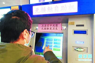 3月9日,在中国科大附属第一医院,就诊者使用“无接触自助机”。 新冠肺炎疫情发生后,为降低公共场所接触性交叉感染的几率,合肥市多家医院及办公场所投入使用“无接触自助机”和“无接触电梯按钮”。 这些设备利用“可交互全息空气成像”技术,将自助机操作界面和电梯按钮以实像形式呈现在空气中,并实现交互操作。使用者不用接触屏幕,在空气中完成所有操作。