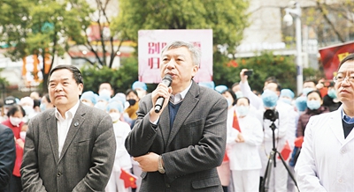舒歌群在致辞中指出,在新冠肺炎疫情形势最严峻的时候,附一院援鄂医疗队162位医务人员,响应习近平总书记和党中央的号召,白衣执甲、逆行出征,投身湖北保卫战、武汉保卫战,为武汉和湖北的疫情防控工作作出了重要贡献,不仅圆满完成各项任务,还确保所有队员“零感染”,得到受援医院和同行的高度评价;魏海明教授和徐晓玲副院长团队开展的免疫治疗方案被列入第七版《新型冠状病毒肺炎诊疗方案》向全国、全世界推广,为打赢新冠肺炎疫情贡献了科大力量和科大方案。舒歌群指出,附一院是中国科大抗击疫情的重要力量和阵地,以实际行动为中国科大“科教报国、追求卓越”的初心使命赋予了新的内涵,是新科大人的生动代言,中国科大以大家为傲!
