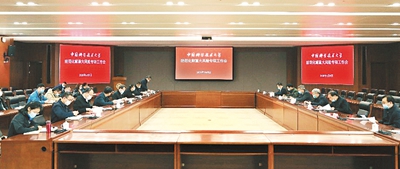 本报讯 4月9日上午,学校召开2020年度防范化解重大风险专项工作会。会议由校党委书记舒歌群主持,校领导朱长飞、蒋一、王晓平、杜江峰、傅尧及相关部门主要负责人参加会议。