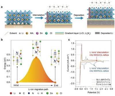 研究人员发现,利用旋涂法制备的金属氯基钙钛矿(MASnCl3和MAPbCl3)具有容纳和传输锂离子的特性。