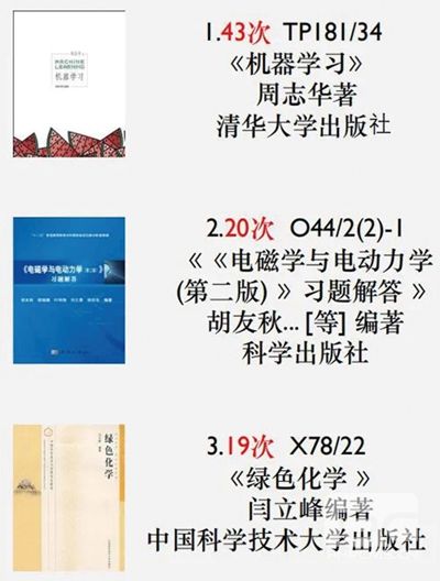 编者按 在世界读书日到来之际,我们来看看在刚刚过去的2019年,有哪些纸质书籍登上了科大人的读书榜单? 谁是我们身边最爱读书的小伙伴?一起来看看我科图书借阅报告。
