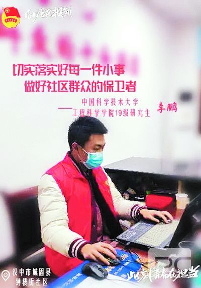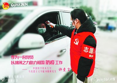 疫情期间,分布在祖国各地的科大学子挺身而出,积极主动参与当地防疫一线工作,他们牢记习近平总书记“疫情就是命令,防控就是责任”的嘱托,在各个城市的街道、社区、村庄、路口留下了暖心的身影。无私无畏地传递着爱与暖,散发着光与热,展现着新时代青年的责任与担当。这里就是李鹏、孔冰娴、汪更新、许壹言、刘明珠五位18级和19级研究生在抗疫中的风采。