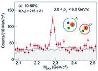Λc信号及Λc与D0的夸克组成示意图和观测到Λc/D0产额的显著增强
