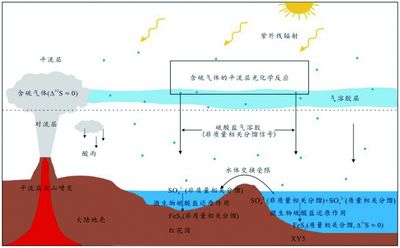 该研究认为,奥陶纪末“平流层火山喷发”将大量二氧化硫、硫化氢和其他火山物质输送至平流层并形成了以硫酸盐为主的气溶胶层(图2)。硫酸盐气溶胶层对全球气候变化和地球系统的热量平衡起着至关重要的作用,因为平流层硫酸盐气溶胶反射短波的太阳辐射、同时吸收长波段的太阳辐射,从而导致地球表面温度下降(即加热自己,冷却地球)。因此,他们提出“平流层火山喷发”触发和驱动的一系列全球气候剧烈变化和海洋缺氧等环境恶化,直接导致了奥陶纪末生命大灭绝。