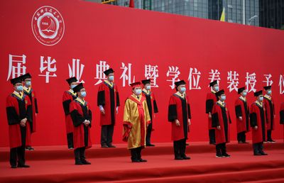 本报讯 绿色运动场洋溢着蓬勃的青春气息,红色主席台昭示着不变的初心使命。6月24日上午,中国科大2020届毕业典礼暨学位着装授予仪式在东区体育场举行。校领导舒歌群、包信和、潘建伟、朱长飞、王晓平、杨金龙、杜江峰、罗喜胜、褚家如、傅尧、吴枫、周丛照,导师代表赵政国院士、陈仙辉院士、陆夕云院士、俞书宏院士等40名导师出席仪式。校党委副书记蒋一主持仪式。