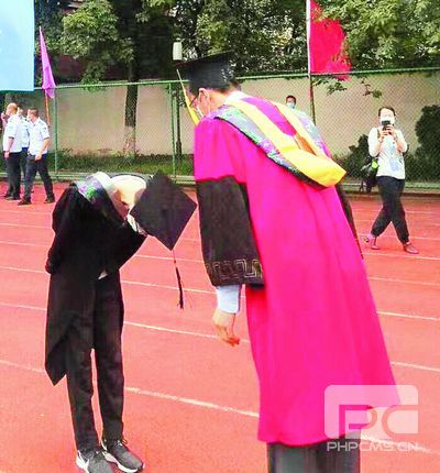 学生向导师深鞠躬致谢,导师亦鞠躬回礼。