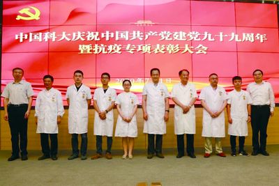 大会第二阶段,举行中国科大庆祝中国共产党建党99周年暨抗疫专项表彰大会。校党委副书记蒋一宣读了学校关于表彰新冠肺炎疫情防控中先进集体和先进基层党组织、先进个人和优秀共产党员的文件。