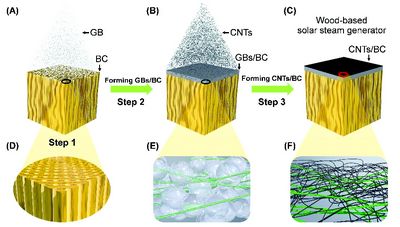图为可持续生物合成多层级太阳能蒸汽发生器制备过程。