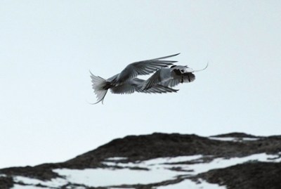 忽然,我觉得很奇怪!这么不好的天气,却有很多北极燕鸥互相追逐,上下翻飞穿梭于云海内外。