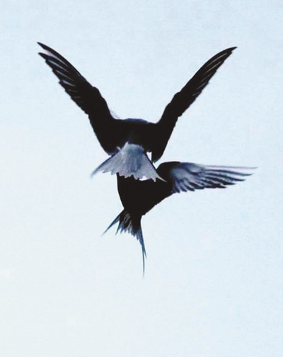 天低云暗温馨,青年燕鸥动心。相互追逐狂,彰显儿女情长。 苍天,苍天,庇护爱神优先。