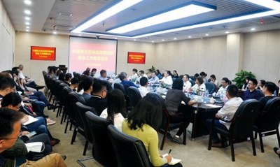 本报讯 9月28日,中国科大苏州高等研究院建设工作部署会议在苏召开。校长包信和院士,党委常委、副校长杜江峰院士,党委常委褚家如及研究院建设工作组全体成员等参加会议。