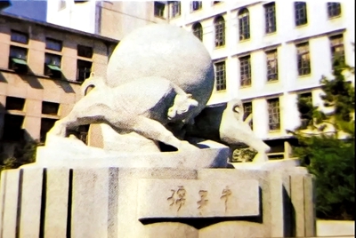 科大东校区老图书馆东南角曾经立有一尊石雕(现在被移到了老图书馆南面的草坪上),水泥基座上两头砥首蹬足的壮牛合力顶起一个圆球。听老校友说石雕最早取名扭转乾坤,当时有校领导觉得这个名字太过张扬,与科大朴实沉稳的校风不符,遂改名为孺子牛。这尊石雕是78级全体同学献给母校的毕业礼物,大概在我读大二还是大三那年完成。