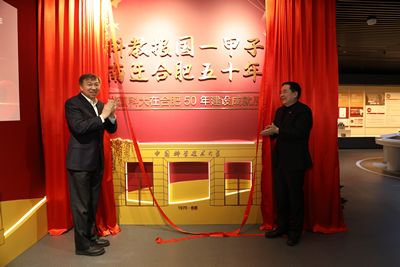 《科教报国一甲子 南迁合肥五十年——中国科大在合肥50年建设成就展》揭幕仪式举行。校党委书记舒歌群、校长包信和为展览揭幕。党委常委、副校长朱长飞主持仪式。在校校领导,党委委员、纪委委员及师生代表参加了揭幕仪式。