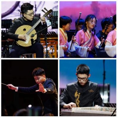 音乐会下半场,拉线合奏《战马奔腾》与笛子合奏《雨碎江南》,一首雄浑豪放,激昂壮烈,带来战场的紧张角逐;一首细腻柔美,委婉清丽,描述江南细雨绵绵的朦胧美景,两首曲子的强烈反差,为观众们带来了极致的震撼与触动。