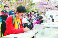 “樱花红陌上,杨柳绿池边。”当天樱花大道热闹非凡,各学生社团结合自身特色展现传统文化之美,亮点纷呈:学生蜗壳画社的团扇绘、学生舞蹈团的舞蹈模仿与竞猜、学生双馨书画协会的对对子、学生历史文化协会的中国结编制、学生正则古琴社的古琴快闪、学生民族乐团的乐器表演、学生折纸社的樱花折纸、学生自然保护协会的节气知识和花草打卡、学生武术协会的武术表演、学生惊蛰文学社的联诗、学生星云诗社(筹)的诗文展示等,各类丰富多彩的活动吸引了广大师生参与,让师生从不同角度近距离欣赏和感受传统文化。