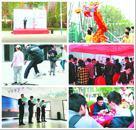 “古老的东方有一群人,他们全都是龙的传人”,开幕式现场,由学生龙舟协会带来的舞龙表演点燃现场观众的热情。学生主持人俱乐部朗诵《人民万岁》、学生轮滑协会和滑板协会精彩的表演秀、学生古琴协会演奏《高山流水》、学生配音社和炫音社等共有9个学生组织带来各具特色的演出,展现了一场高水平文化盛宴。在中区沿线主干道上,红色帐篷下由各学生组织精心准备的互动展示吸引了众多学生前来参与。党史知识竞答、趣味你画我猜、制作棉花糖、模拟真人CS、街舞、汉服试穿……一个个别具风格的活动形式充分展现了校园浓厚的文化氛围。