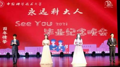本报讯 6月19日晚,中国科学技术大学“永远科大人”毕业纪念系列活动之See You 2021毕业纪念晚会在东区大礼堂精彩呈现。校党委书记舒歌群、校长包信和、校党委副书记傅尧出席晚会,与相关部门、学院负责人和千余名师生共同欣赏了这一毕业盛宴。