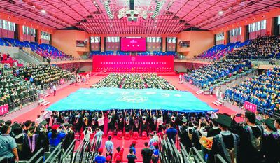 仪式上,校党委书记舒歌群带领毕业生庄严宣誓:“感恩父母养育,感谢导师教诲,不忘母校培养。我们坚守母校信念,热爱科学、崇尚真理;我们传承母校精神,科教报国、追求卓越。我们用激情和智慧建设祖国,用责任和行动回馈社会,用成就和硕果回报母校。”