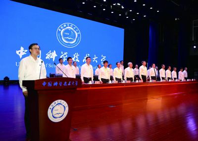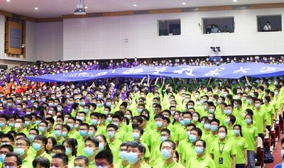 在热烈的掌声中,校长包信和院士为新生送上题为《擎旗奋进 努力做科技强国先锋力量》的开学寄语,与2021级新生分享人生感悟。包信和指出,未来属于青年,希望寄予青年。今年是中国共产党成立100周年,“100”象征着圆满,又赋予了希望,同学们在今年进入大学校园、开启求学奋斗之路有着特殊的历史意义。国有所需、我有所应。中国科大自诞生之日起就与国家同呼吸共命运,六十多年的红色校史映照了一代代科大人红心向党、科教报国的光辉历程。包信和向同学们提出希望,愿大家知责力行,拥抱时代,开启丰富多彩的大学生活。