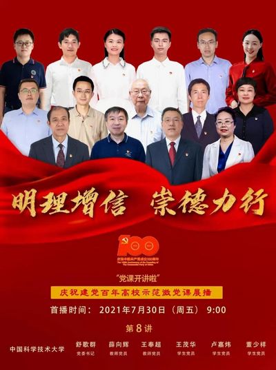 摄制“中国科大庆祝建党百年高校示范微党课”,在新华网、人民网、共产党员网、学习强国等十几个平台同步播出。微党课由舒歌群书记领衔主讲,学校“双创”带头人和党史学习教育学生宣讲团成员共同讲述,为大家展示了老一辈科学家为我国国防事业和科技发展所做出的卓越功勋和感人事迹,砥砺广大师生科教报国之志。