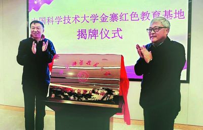 本报讯12月9日上午,中国科大金寨红色教育基地揭牌仪式在安徽金寨干部学院举行。校党委书记舒歌群,党委副书记傅尧,六安市委常委、金寨县委书记汪冬出席揭牌仪式,学校相关部门主要负责人及安徽金寨干部学院负责人参加揭牌仪式,揭牌仪式由金寨县委副书记朱健主持。舒歌群和汪冬共同为中国科大金寨红色教育基地揭牌。