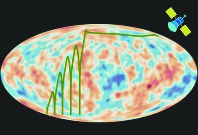 高能区的物理沙漠中,存在着一小片新物理绿洲,由共振增益机制放大到可观测的范围,被原初引力波望远镜探测到。图片来源:欧洲空间局/普朗克合作组