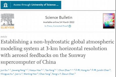 本报讯 4月1日,中国科大地球和空间科学学院赵纯教授课题组与计算机科学与技术学院安虹教授课题组联合攻关,在新一代神威超级计算机上首次实现了长达7天的全球3公里空间分辨率大气物理-化学全耦合数值模拟试验。相关研究成果发表于Science Bulletin杂志上。