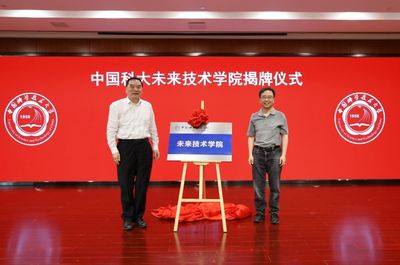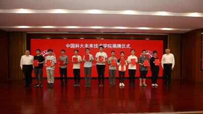 本报讯 5月7日,中国科大未来技术学院揭牌仪式在东区师生活动中心举行。校党委书记舒歌群、校长包信和,常务副校长、未来技术学院院长潘建伟,副校长杨金龙,党委副书记、党委宣传部部长傅尧,党委常委、副校长周丛照出席仪式。党委常委、副校长罗喜胜主持仪式。